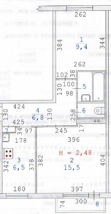 Общая площадь: 48.4м2